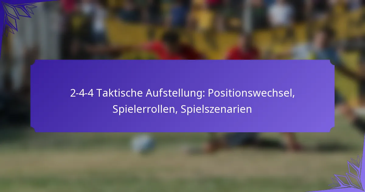 Die 2-4-4 Fußballformation ist ein dynamisches taktisches Setup, das den Fokus auf offensive Spielweise legt und gleichzeitig eine starke Präsenz im Mittelfeld sicherstellt. Durch die Konzentration auf das Positionsspiel können Teams Räume schaffen und die… 2-4-4 Fußballtaktiken: Positionsspiel, Pressing-Auslöser, Erholungsläufe